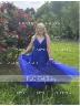 • A-Line/Princess V-neck Floor-Length Tulle Prom Dresses With Appliques Lace