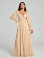 • A-Line/Princess V-neck Sweep/Brush Train Long Sleeves Chiffon Bridesmaid Dress