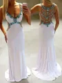 A-Line/Princess V-neck Sweep Train Jersey Prom Dresses With Rhinestone