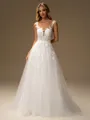 • A-line Scoop Appliques Lace Sweep Train Tulle Wedding Dress