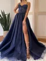 • A-line Spaghetti Straps Appliques Lace Sweep Train Corset Dress