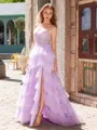 • A-line Spaghetti Straps Appliques Lace Sweep Train Tulle Corset Porm Dress