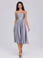 The A-line bridesmaid dress with spaghetti straps and a sleeveless design is both stylish and comfortable. The bodice features pleating, which adds a touch of elegance and enhances the overall fit. The tea-length satin skirt offers a modern twist, making it perfect for a chic and contemporary bridal party look. This dress is ideal for bridesmaids who want a blend of classic and trendy elements.