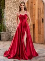 A-line Spaghetti Straps Sweep Train Silk Like Satin Porm Dress