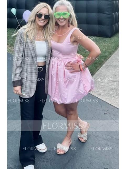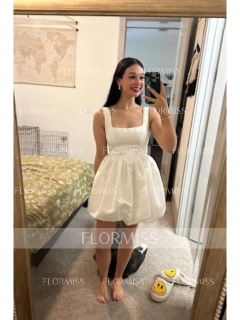 • A-line Square Short/Mini Satin Corset Homecoming Dress
