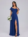 • Sheath/Column Off-the-Shoulder Sweep Train Polyester Bridesmaid Dresses With Leg Slit