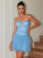 This playful A-line dress features a straight neckline and a sleeveless design that highlights the shoulders and arms with modern simplicity. Cascading ruffles flow gracefully down the skirt, adding movement, texture, and a touch of romance. The short or mini length creates a fresh and youthful silhouette, making this dress a perfect choice for parties, daytime events, or special celebrations where fun meets elegance.