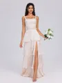 • Sheath/Column Off-the-Shoulder Sweep Train Polyester Bridesmaid Dresses With Leg Slit