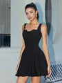 This A-line dress features slender straps and a sleeveless design for a clean, elegant look. Made from stretchy crepe fabric, it offers comfort and a flattering fit. The short/mini length adds a youthful, stylish touch-perfect for casual or semi-formal occasions.