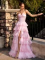 Shine with elegance in this A-line prom dress featuring a sweetheart neckline and sleeveless design. Crafted from soft tulle, the floor-length silhouette is adorned with intricate lace appliques, creating a romantic and sophisticated look perfect for unforgettable formal occasions.