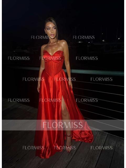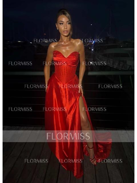 • A-line Sweetheart Beading Sweep Train Silk like Satin Corset Porm Dress