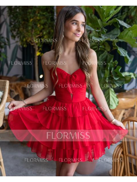 • A-line Sweetheart Cascading Ruffles Short/Mini Chiffon Corset Homecoming Dress