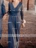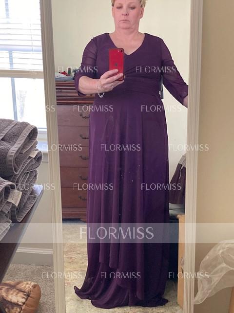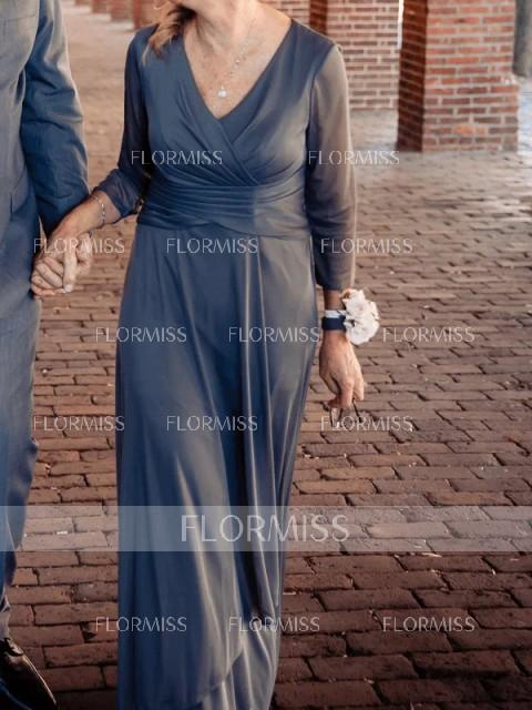 This floor-length mother of the bride dress exudes timeless sophistication. With its A-line silhouette, it offers a flattering and graceful look. The V-neckline adds an elegant touch, while the 3/4 sleeves provide coverage and style. Pleating detail enhances the waistline, creating a feminine and refined silhouette. Crafted from satin chiffon fabric, it ensures both comfort and luxury. Perfect for a mother who seeks an understated yet chic ensemble for her daughter's special day.