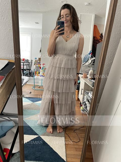The A-line V-neck Sleeveless Cascading Ruffles Floor-Length Bridesmaid Dress is a stunning and elegant choice for bridal parties. With its flattering A-line silhouette, chic V-neckline, and sleeveless design, this dress exudes timeless charm and sophistication. The cascading ruffles add a touch of drama and movement, creating a romantic and ethereal look. Perfect for weddings or special occasions, this dress ensures bridesmaids stand out with grace and style, making a memorable impression throughout the celebration.