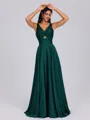 • A-line Chiffon V-neck Pleated Floor-Length Porm Dress