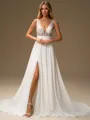 • A-line V-neck Sequin Court Train 30D Chiffon Wedding Dress