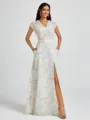 This floor-length bridesmaid dress features an A-line silhouette, offering a flattering and timeless look. The V-neckline and short sleeves add a touch of elegance and sophistication. Perfect for a bridesmaid who desires a chic and graceful appearance for the wedding.