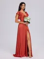 • Sheath/Column Off-the-Shoulder Sweep Train Polyester Bridesmaid Dresses With Leg Slit