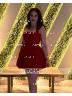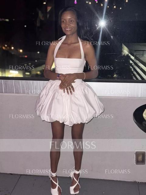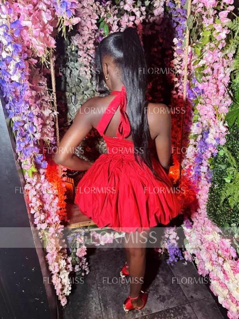 This ball-gown dress features a halter neckline and a sleeveless bodice for a modern and elegant look. The full skirt creates a voluminous silhouette while the bow detail adds a touch of charm. With a short or mini length, this dress is perfect for parties special events or semi-formal occasions.