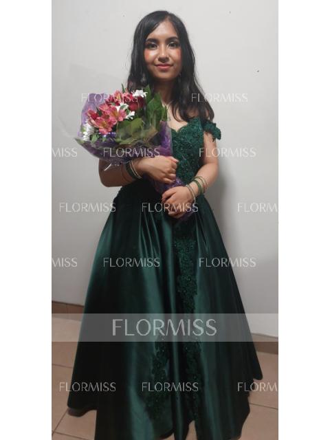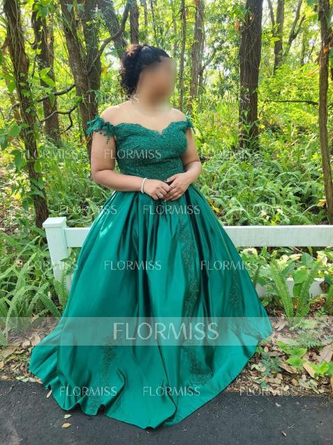 Ball Gown Off-the-Shoulder Floor-Length Satin Prom Dress With Appliques Lace