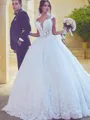 • Ball Gown Sweetheart Sweep Train Tulle Wedding Dresses With Appliques Lace