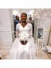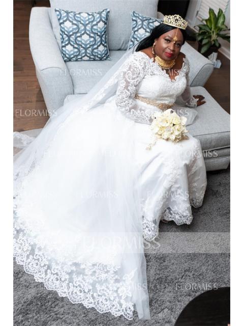 • Ball Gown V-neck Cathedral Train Tulle Wedding Dresses With Appliques Lace