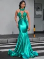 Mermaid Halter Appliques Lace Floor-Length Jersey Porm Dress