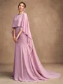 Sheath/Column Chiffon Ruffles Scoop Long Sleeves Sweep/Brush Train Mother of the Bride Dresses