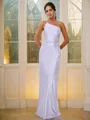 • Sheath/Column Silk Like Satin Ruched One-Shoulder Sleeveless Floor-Length Bridesmaid Dresses
