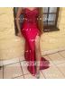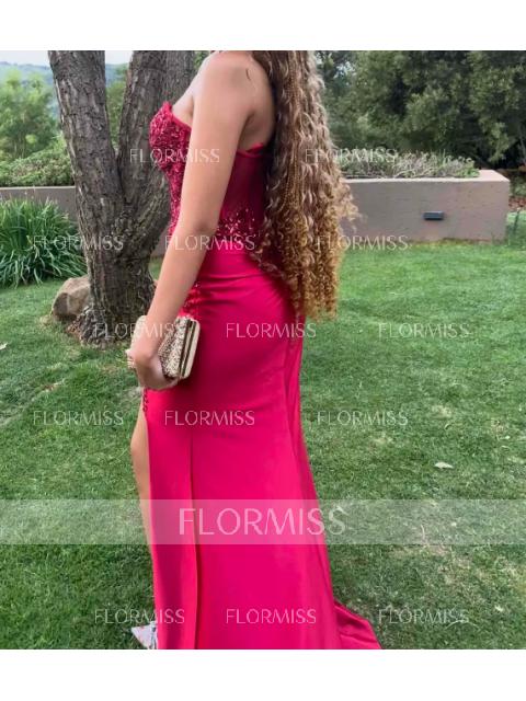 • Sheath/Column Silk Like Satin Sequin Sweetheart Sleeveless Court Train Porm Dress