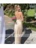 • Sheath/Column Halter Floor-Length Sleeveless Silk Like Satin Bridesmaid Dress