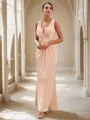 • Sheath/Column Jersey Ruched V-neck Sleeveless Floor-Length Bridesmaid Dresses