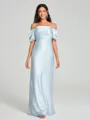 • Sheath/Column Off-the-Shoulder Floor-Length Short Sleeves Silk Like Satin Bridesmaid Dress