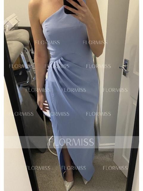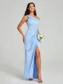 • Sheath/Column One-Shoulder Floor-Length Sleeveless Charmeuse Bridesmaid Dress