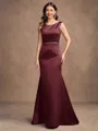 • Sheath/Column Satin Beading Scoop Sleeveless Sweep/Brush Train Mother of the Bride Dresses