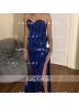 Sheath/Column Sequins Ruched Sweetheart Sleeveless Sweep/Brush Train Dresses