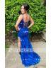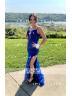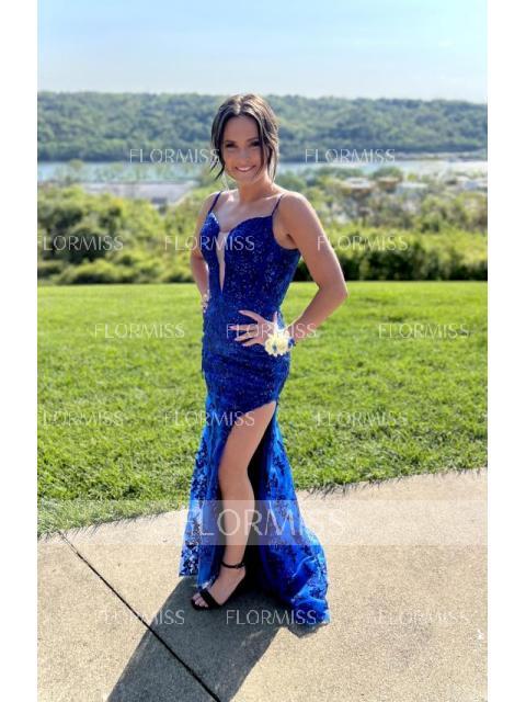 Sheath/Column Straps Sweep Train Lace Prom Dress With Leg Slit