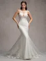 • Sheath/Column Stretch Crepe Lace Scoop Sleeveless Court Train Wedding Dresses