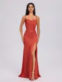 This elegant Sheath bridesmaid dress features a cowl neckline and sleeveless design. Made from silk like satin, the floor-length gown is pleated, adding a sophisticated touch to the ensemble. Perfect for formal occasions and weddings.