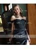 • Sheath Silk Like Satin Off-the-Shoulder Appliques Lace Sweep Train Corset Porm Dress