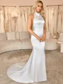 • Sheath Halter Court Train Silk Like Satin Wedding Dress