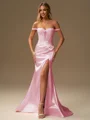 Sheath Off-the-Shoulder Appliques Lace Sweep Train Silk Like Satin Corset Dress