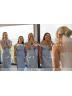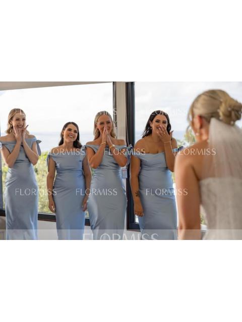 • Sheath/Column Off-the-Shoulder Sweep Train Polyester Bridesmaid Dresses With Leg Slit