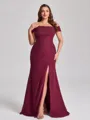 • Sheath/Column Off-the-Shoulder Sweep Train Polyester Bridesmaid Dresses With Leg Slit
