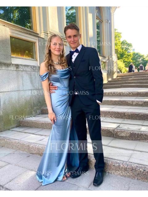 • Sheath Off-the-Shoulder Pleated Floor-Length Silk Like Satin Corset Dress