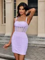 This chic short/mini dress epitomizes contemporary elegance with its sheath silhouette and off-the-shoulder neckline. The sleeveless design and pleated detailing add a touch of sophistication, while the corset bodice accentuates the waistline for a flattering fit. Perfect for both formal events and semi-formal occasions, this dress seamlessly blends classic charm with modern style, making it a versatile choice for any wardrobe.