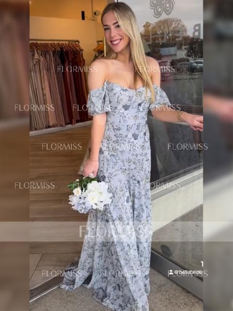 • Sheath Off-the-Shoulder Short Sleeves Floor-Length Bridesmaid Dress