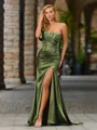 • Sheath One-Shoulder Appliques Lace Court Train Silk Like Satin Corset Porm Dress