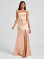 • Sheath One-Shoulder Pleated Floor-Length Silk Like Satin Bridesmaid Dress