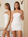 This sheath dress features a one-shoulder neckline and a sleeveless corset bodice that shapes and defines the waist. The fabric is pleated, adding texture and sophistication to the fitted silhouette. The short or mini length creates a sleek and elegant look, ideal for parties, cocktail events, or special occasions.
